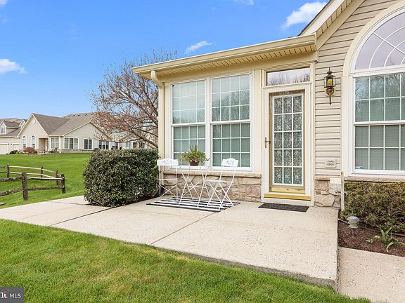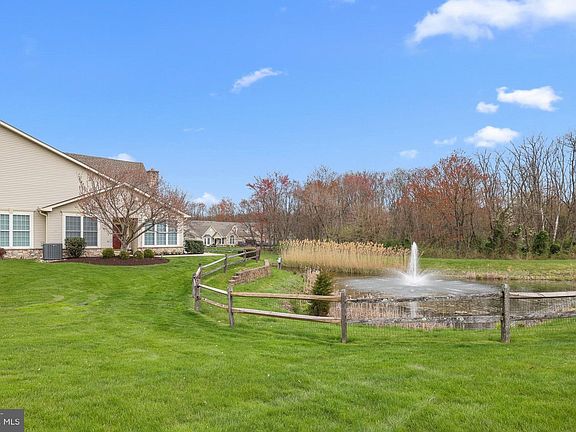 Welcome home to 534 Poppy Ct, a Rosewell Model Quad in the desirable 55+ community of Flowers Mill. As you drive up to the home, you will find this property on a desirable lot with expansive views. From the patio and sunroom you will enjoy views of a tree-lined pond in front and open fields to the side. These will become your favorite peaceful spaces where you can take in not only the picturesque landscape, but also the calming sounds of the fountain featured in the pond. Enter this home through the covered porch and be welcomed by a foyer leading to a large, open concept living room, dining room and kitchen setup with vaulted ceilings and hardwood floors and elegant gas fireplace. Just to the left of the foyer, a set of double doors open into a den/study which makes for a cozy sitting room or private office space. Back in the living room. don't miss the entrance to the sunroom with access to the private patio. The nicely sized kitchen features beautiful dark 42" cabinets, room for a kitchen table and a large pantry. You'll love the first floor primary suite with tray ceilings, 2 sets of closets, a walk-in as well as an additional double closet, and an ensuite bathroom with double sink and stall shower. The main level also features a second bedroom and additional full guest bath. Finishing out the first floor you will find the laundry room with access to a 2-car garage with additional storage space, everything you need all on 1 floor! But as a bonus, you will find a finished loft with half bath, a large space with so many possible uses, a secluded retreat for visitors, private office or hobby room, or just the extra storage anyone trying to down-size will love. This house has all the room you need to make it your home. Of Note: Roof (2022). Enjoy all the activities that Flowers Mill has to offer including a recently updated clubhouse, indoor pool, outdoor pool, tennis courts, bocce, NEW pickle ball courts, walking trails and a calendar full of events.