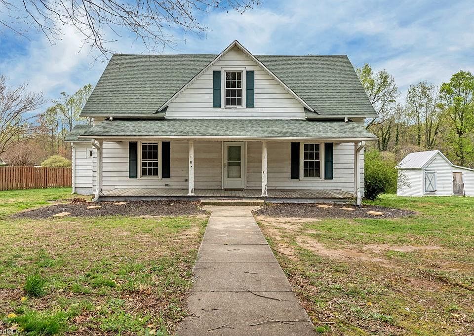 MULTIPLE OFFERS! Deadline 4/9 at 12pm. You do not want to miss this opportunity! Sellers relocated to NC and bought this home in hopes to live in it for 10-15 years. Now they are home-sick and you have the opportunity to continue their renovations. Sellers already completely renovated the kitchen, bathroom, new ceiling fans in all rooms, some new outlets and switches, and whole-house interior paint. This early 19th-century bungalow sits on nearly 1.5 acres of cleared land with a large Barn and two additional storage buildings that are included in this purchase. The 3BR/1BA also has sizable rooms and ample walk-in attic space. There is a propane floor heater downstairs, but the home has no permanent heat source. Colfax is conveniently located near I-40, dining, shopping, and hospitals. Take a short drive to PTI Airport, Kernersville, and the Piedmont Triad Farmers Market. With brand new kitchen appliances, fresh paint, and a completely renovated bathroom, you can’t miss this opportunity