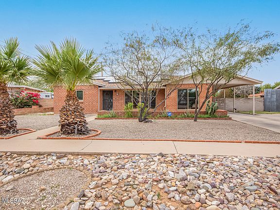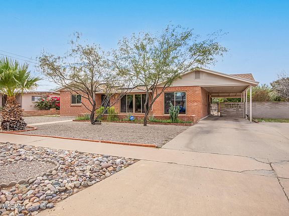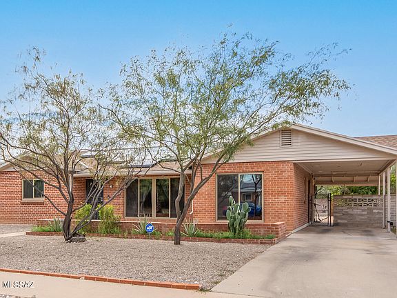 Come See this fully remodeled in 2020 Charming Red Brick home in a Family Friendly Neighborhood! This 3 bed, 2 bath property offers beautiful mature low-care landscape, and comes with energy-efficient solar. Some upgrades include dual pane windows, shingle roof, AC, water heater and more. Inside, you'll find a remodeled interior w/neutral tile floor, soothing palette, and a perfectly-sized living room for relaxing. Cooking is a delight in this impeccable eat-in kitchen boasting wood cabinets, SS appliances, & granite counters. The Arizona room is filled w/so much natural light, perfect while enjoying your morning coffee. Have a good night's sleep in the primary suite showcasing separate backyard access. The other bedroom has a private bathroom & a sliding glass door to the back. Remodeled bathrooms with new plumbing fixtures, shower tile, water lines, lighting, and accessory fixtures. Relax in the serene backyard providing a covered patio w/extended pavers & a sparkling blue pool. BONUS there's even a storage shed. Seller is providing a transferable Home Warranty! Only a 5 min. walk to Palo Verde Park and 1 street away from Kellond Elementary School. Schedule a showing today!