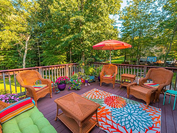 Come see what pride of ownership looks like in the Poconos. Tucked away on just over an acre in the heart of Barrett Township, this well-maintained 3 bedroom, 2 bath bi-level offers the perfect blend of comfort, privacy, and plenty of outdoor areas perfect for relaxing or entertaining. Step inside to find new, low-maintenance laminate flooring throughout most of the home, a cozy propane fireplace in the main living room, and a brand-new propane stove in the lower-level family room—ideal for chilly mountain evenings. Upstairs features two bedrooms, a bright living room, a dining area with sliding glass doors to the deck, and a functional kitchen with plenty of space to cook and gather. Downstairs you'll find a third bedroom, a cozy family room, a large bonus room ideal for a home gym, office, game room, or extra sleeping space, plus a screened-in porch (with built-in bar!) that lets you enjoy the peaceful wooded setting in comfort. Whether you're entertaining or just enjoying a quiet morning coffee, this home delivers with multiple large decks, a screened-in porch, and a newly carpeted back deck. The backyard is a true escape, complete with a basketball pad and a heated pool with a wraparound deck. Parking is a breeze with a paved driveway leading to a two-car attached garage plus a second driveway for overflow—great for guests or extra vehicles. This property has been lovingly cared for and it shows—from the clean, functional layout to the thoughtful outdoor spaces, it's move-in ready and waiting for its next chapter. Located close to lakes, hiking, skiing, and more, this is your chance to own a piece of the Poconos with low HOA dues and maximum comfort. Homes like this don't last—schedule your showing today before it's gone.