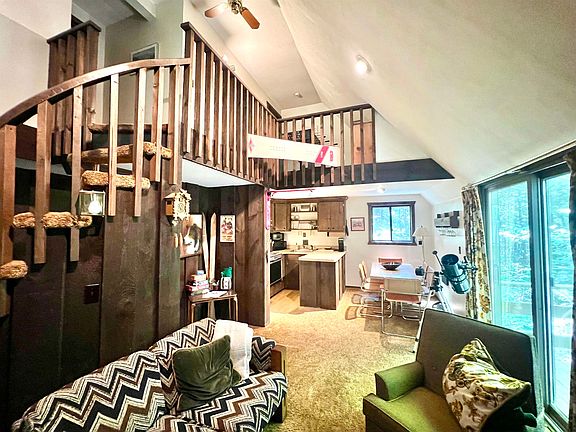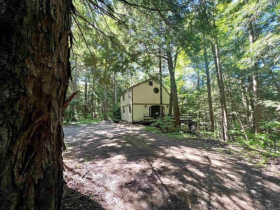 This vacation home is located among the trees in Sherwood Forest. The cozy living space has an open kitchen, dining and living that are warmed by a wood stove in the colder months. A slider door leads out to the deck where you can sit in the shade of the treetops and enjoy the sounds of the Floodbrook. One bedroom and full bath are conveniently located on the first floor. A spiral staircase takes you to the second floor offering two more bedrooms , half bath, and small loft area that looks over the living area. This well built home can be enjoyed for its vintage charm or can be easily renovated to a more modern design. Owner uses it as a vacation home and rents it out when not visiting.