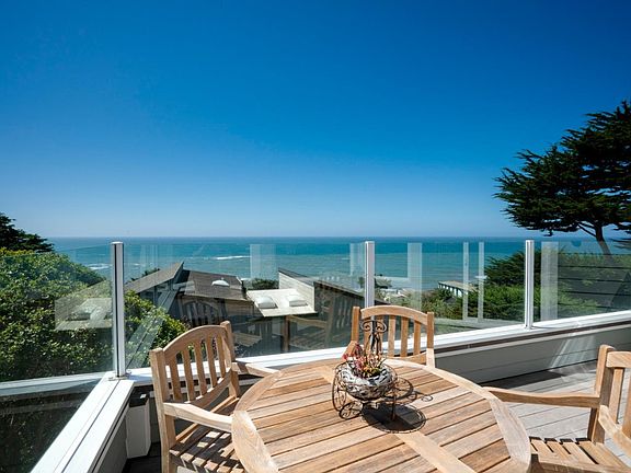Grand coastal contemporary home located in Moss Beach w/ breathtaking views of the Pacific Ocean. This impressive floor plan is elegant, bright and open w/ high ceilings in many rooms, skylights, travertine tile and hardwood flooring throughout. Entertain in the large epicurean kitchen w/ spacious dining island, stainless steel appliances, granite counters, Viking oven/range with hood and attractive back-splash. The main level also affords one master suite w/ walk-in closet, one bedroom, full bathroom and sunken formal living room w/ fireplace and ocean views; a great place to enjoy intoxicating sunsets. Retreat to the downstairs living area w/ a magnificent master bedroom w/ ocean views, high ceilings, gas-log fireplace and large master bathroom w/ dual vanities, sunken tub w/ jets, stand-in shower and walk-in closet. Highlighted is the approximate 400 sq.ft theater w/ couch seating, flat-screen TV, HD projector and screen. Fenced rear yard outside family room w/ large deck and lawn.