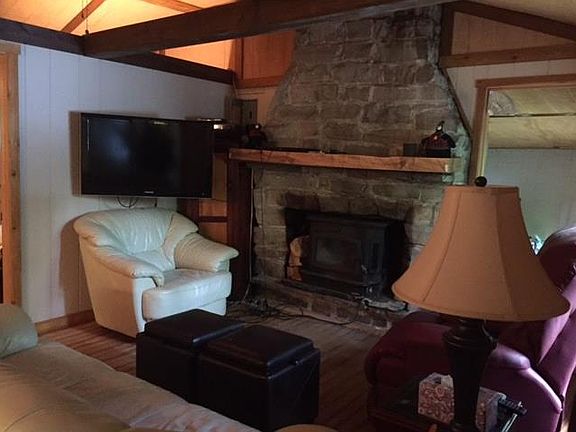 Privacy at its best! Welcome to this secluded, yet conveniently located property just minutes of off route 31. Open concept with wood ceilings, beams, wood flooring, and gorgeous stone fireplace. The back side of the property opens to an expansive deck overlooking the beautiful wooded area. Relax your evenings away sitting along side the fire pit.