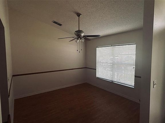 Welcome to this charming, low-maintenance 3-bedroom, 2-bath home with a desirable split floor plan. The spacious primary bedroom features a walk-in closet, dual sinks, and a private bath, jetted garden bathtub, and a stand-alone walk-in shower. Two additional bedrooms and a full bathroom are located on the opposite side of the home, along with a hallway storage closet. The layout offers comfort and flexibility, with a separate living room, dining room, and a generous family room perfect for gatherings. The kitchen boasts ample cabinet space, a pantry, and convenient access to the family room, which opens to an expansive screened patio. From here, step into a beautifully landscaped backyard that serves as a butterfly garden, filled with plants that attract these graceful visitors. The fenced yard backs onto a serene conservation area, ensuring privacy and no rear neighbors. The laundry area is set apart near the garage, which includes built-in shelving for organization. New roof installed 2022. New A/C 2022. And, new interior paint 2025. Enjoy easy access to major highways, shopping, and the Neighborhood Center of South Lake—just a short walk away.