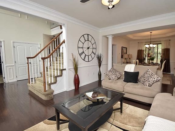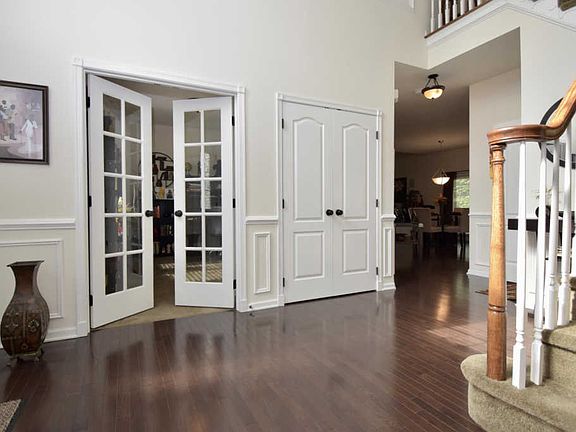 Warm, inviting & spacious. Practically new home, only 5 years old, will have you hosting the holidays in great style. Grand two story foyer & formal living/dining rooms with classic details. Rich woods in the floors and cabinetry throughout, and neutral decor. Spacious center island kitchen has granite and stainless steel, and opens to a sunken family room with a wonderful peaked ceiling and no-fuss gas fireplace. Master suite equipped with luxurious bathroom, dressing area & large walk-in closet. First floor office! Full basement with outside entrance will be a breeze to finish. Located on a cul-de-sac, the yard is level with plenty of play space. Close to the community entrance so getting to stores and highways etc takes just a few minutes. This could be the one you've been waiting for!