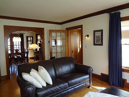 "Welcome Home!" 1.5 story home, all hard-wood floors in exceptional condition. All the flooring, trim, and decorative molding is in prime condition (never painted). Bedrooms are large with plenty of storage space. Neighborhood Description Residential neighborhood very centrally located to every convenience.