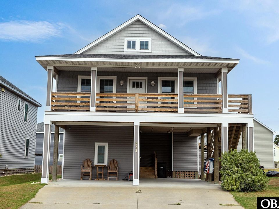 Welcome to 534 W Eden Street, a beautifully maintained coastal retreat located just one block from the sound in the heart of Kill Devil Hills. Built in 2021, this thoughtfully designed home blends modern comfort with timeless Outer Banks charm, offering a bright and open layout perfect for full-time living, a second home, or an investment property.  The home features approximately 1,722 square feet of well-appointed living space with three bedrooms and three baths. The lower level includes a comfortable guest suite complete with a wet bar and mini fridge, providing privacy and flexibility for family or visitors. Upstairs, the open-concept living area is warm and inviting, filled with natural light and coastal character. The expansive covered front porch stretches across the façade, providing an ideal setting to enjoy gentle breezes and beautiful soundside sunsets.  With virtually no comparable homes currently on the market, this property offers a rare opportunity to take advantage of limited inventory in a highly sought-after neighborhood. The location is exceptional—just steps away from the Bay Drive multi-use path, perfect for morning walks or evening bike rides, and within easy reach of Hayman Street Park, the soundside pier, gazebo, and Dock Street boat ramp.  The thoughtful layout, proximity to the sound, and modern coastal finishes make this residence both functional and inviting, while the surrounding neighborhood provides that authentic Outer Banks lifestyle so many desire.  534 W Eden Street is more than just a home—it’s a place where comfort, convenience, and coastal beauty come together. Whether you’re looking for a serene primary residence, a vacation getaway, or an investment opportunity, this property delivers the perfect balance of modern design and coastal living.
