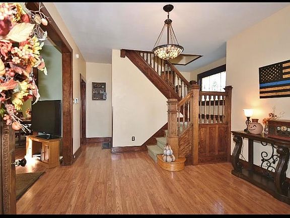 Live in your own Hallmark Holiday movie. This beautifully well maintained all brick home is everything you need! Relax on your inviting front porch while you swing your day away...a lovely level lot allows for plenty of outdoor activity. As you walk into the welcoming foyer with original woodwork throughout and high ceilings you will fall in love at first sight. Three large bedrooms with an additional entertainment area on the 3rd floor you will have plenty of room to spread out. The clawfoot tub and custom tile work within the bathroom is also a bonus for you to settle into after a long day! A large 2 car detached garage is great for all your exterior toys with an additional living space above. You won't want to miss this one!