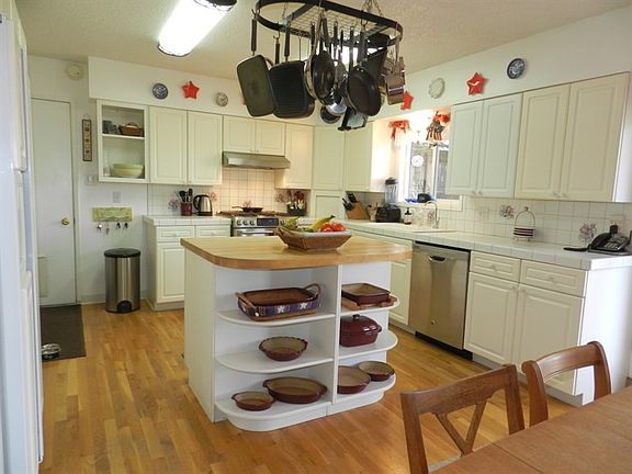 Well-cared for 4 bedroom and office 3 bath home with 2464 sq ft. Many updates and improvements! Bright kitchen with lots of storage, tiled counter tops, rollouts, hardwood floors and butcher block island. New dishwasher 2014. Free-standing gas fireplace. Main floor features 3 bedrooms and 2 baths. Rec-room, bedroom, office, bathroom/laundry and storage/workshop in the basement. Fully fenced yard with 2 storage sheds, raised garden beds and extensive landscaping. New roof and gutters 2011, exterior paint 2012. New electrical panel 2013. Alley access to yard.