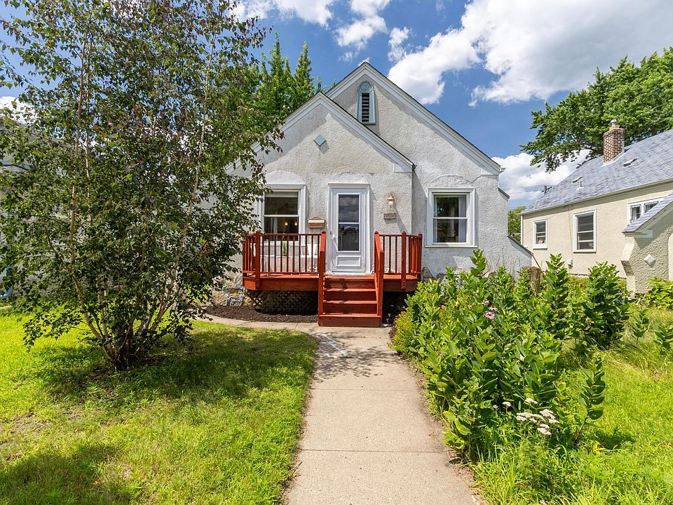Classic 2br/1ba, 1928 stucco bungalow for sale for the first time in over a decade! This adorable urban cottage sits right between Lake Nokomis and Minnehaha Falls for the ultimate in convenience. This energy-efficient home has newer HVAC and hot water heater, a fully-fenced yard featuring a new cedar privacy fence, tastefully renovated kitchen and bath, and an extra large 2-car garage with bonus concrete parking spot to top it all off. Bring your ideas to finish the basement (note the tall ceilings) and double your living space! Don't wait--this one will go quickly! Owner is agent.