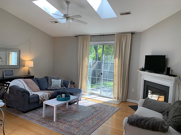Desirable Carleton Place, one level living centrally located and near UNCW. 3 Bedroom and 2 full bath, with one car garage, and fenced in backyard with privacy that backs up to the woods. Hardwoods in main living area, tile bathrooms. Skylights, vaulted ceilings, open bright living area & kitchen with long granite countertop bar. Large main suite, walk-in closet, double vanity main bathroom, split bedroom plan. Just 5 miles to Wrightsville Beach and 15 Minutes to Downtown Wilmington. Great restaurants and shopping are minutes away. Easy walk to community pool or UNCW. Ride your bike to the beach with quick access to Wilmington Cross City trail. Tenant is responsible for Cable/internet, Power (Duke energy), and water/sewer through CFPUA. Trash is included in the rent. Also included is exterior yard maintenance , pest control, and community pool. 1 year lease, references and work history required. Background check will also be done. No smoking.