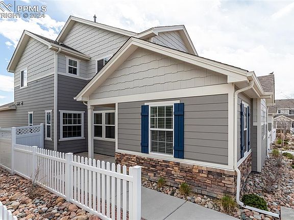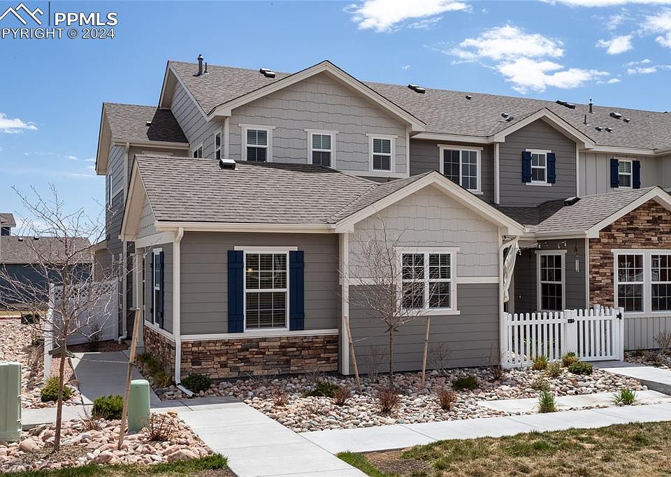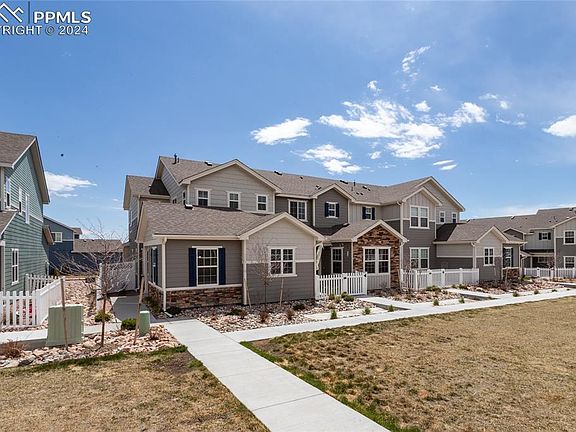 Like New Gorgeous Modern 2-Story With Main Floor Master Bedroom Located In The Highly Desirable Community Of The Townes At Wolf Ranch!*Award Winning Design With Enclosed Private Front Entrance & Patio!*Tons of windows allow the light to shine through this spacious & open Great Room design with 9' foot ceilings that boasts 3 Bedrooms, 3 Bathrooms & 2 Car Attached Garage.*The neutral decor will match any design choice.*Luxury Vinyl Plank flooring flows through the main living areas and the large gourmet kitchen includes 42" cabinets, under cabinet lighting, Quartz countertops, tile backsplash, huge island with plenty of room for seating, pantry, & Stainless Steel appliances to include the refrigerator.*The dining area is surrounded by windows making for a pleasant dining experience.*The roomy main floor master bedroom includes a barn door leading to the En Suite master bath with separate dual sinks/vanities with quartz countertops, oversized shower with bench & tile surround, tile floors & large walk-in closet.*The powder room, laundry area - including washer & dryer, and coat closet complete the main level.*The staircase with open stair rail leads you to the upper level where you will find 2 large bedrooms with walk-in closets separated by a hallway, a hall/guest bath with quartz countertop, tile floor and tub/shower tile surround, linen closet, & separate closets containing the Tankless HWH & Furnace (no running to the crawl space to replace the filter!).*Additional features include: extra recessed lighting, prewired for surround sound, NEMA 14-50 outlet (50 amps) for EV charging station, window blinds & garage door opener.*Property is located towards the back of the community where it is quiet & does not front onto Powers Blvd, plus Guest Parking is close by.*Prime northern/eastern location with easy access to Powers Blvd, I-25, AF Academy, shopping & restaurants, entertainment, parks & trails, & award winning District 20 Schools.*Move In Ready! Welcome Home!