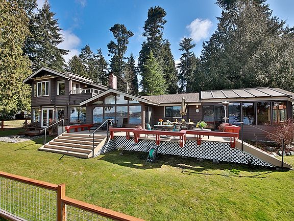 Drench yourself in Whidbey Island living with Westerly views, 100 ft. (+/-) of waterfront & newly installed stairs to the beach on 1.3 acres (+/-). Relax on your expansive deck while eagles soar by. Superb design & interior features where rustic meets modern. Euro design windows/doors in living rm & master. A cooks kitchen, Mariana soapstone counters & solarium. Exquisite master bath & bedroom, private view deck w/electric awning. An additional 2 bedroom master suite on the main level. Please call Suzanne Leisher at (425) 446-2380.