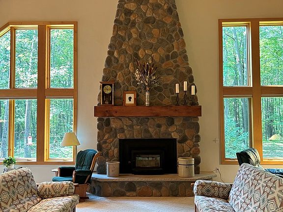 Beautiful home on a quiet private road between Sturgeon Bay and Egg Harbor. Just 15 minutes from town but a world away... Situated on a 2.5 acre lot, the half log siding nestles the house in the surrounding woods. The interior is a bright and sunny surprise with thoughtful, quality construction surrounding you. Soaring ceilings anchored by a beautiful stone fireplace with an insert to warm you in the winter. Beautiful views out every window! His and hers hobby rooms, an additional 400 sf lofted living area (perfect for a quiet get-a-way) overlooks the great room, an extra large insulated garage with additional storage above, a new patio overlooking the back yard... it's the perfect place to unwind and enjoy the peaceful setting.
