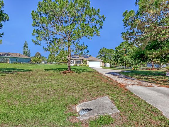 Spacious 3-bedroom, 2-bathroom split floor plan pool home meticulously maintained on over 1.6 acres in Canaveral Groves. With both a formal dining room and office that could easily be converted into additional bedroom(s). The large primary bedroom features a walk-in closet, and the en suite includes double sinks, a tub, and a separate shower. The home is equipped with double-pane tilt windows and custom plantation shutters. There is a whole-home water filtration and softener system, as well as an AC unit air purifier. The spacious back porch has newer doors and vinyl windows with shades. There is plenty of room for entertaining by the beautiful inground pool and spa overlooking the expansive fully fenced backyard. The property has a new well with a rust-remover system directly connected to the sprinkler system. Additionally, there's a shed with electricity for tools and equipment as well as a large drive-through shop for all your toys. This home is packed with amazing features!