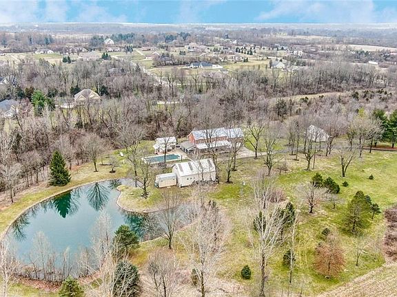 Charming Farmhouse on 13 Private Acres, Pool, Pond, and 4 outbuildings in Springboro Schools! You have found your dream home! Fall in love down the tree-lined driveway to find the picturesque 1800s farmhouse w/ recently-added front porch. Step inside to find large rooms, hardwood floors, crown moulding in most every room. Off main entry/parlor you'll find a library/sitting room & formal dining room flanking each side, & first floor bedroom w/ on-suite. Down the halls- original exposed brick adding to the fabulous character of the home. Rear family room w/ towering ceilings & rustic wood beams is a wonderful space for entertainment. Spacious kitchen w/ stainless appliances & ample cabinet space. Upstairs 4 bedrooms plus amazing laundry "room." Lux Mstr ste w/ vaulted ceilings full bath, walk-in closet and private stairway. Darling pool/guesthouse with bedroom & full bath. Heated pool w/ new cover. Add'l huge 3-car barn, barn w/ chicken coup, & oversized shed. Pond- wind powered aerator.
