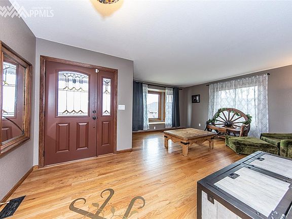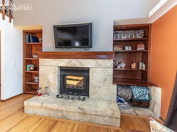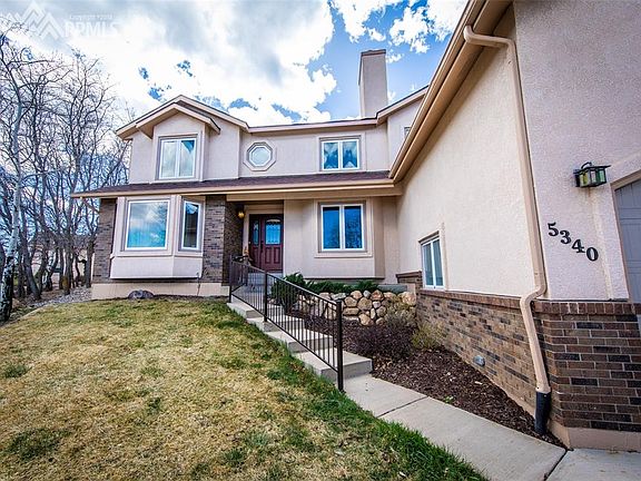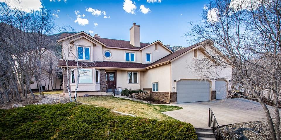 Spacious family home in the Cheyenne Mountain School District. This updated Broadmoor Bluffs home offers a low maintenance stucco and brick exterior on a larger lot with a large, flat back yard with plenty of room to play! Recent updates to the home have included windows, garage doors, roof, and front door. Inside the main level boasts expansive hardwood floors throughout. The warm kitchen includes a great breakfast bar for quick bites and homework, as well as an attached breakfast room. Walk out from the breakfast room onto the 400 square foot composite deck, perfect for hosting family and friends! Off of the kitchen is the 2 story, light filled family room with a gas fireplace and built-ins. Also, on the main level is a formal living room, dining room, bedroom and full bath. The grand upper level master bedroom includes a sitting area with gas fireplace, perfect for a small study or a spot to unwind quietly at the end of the day! The updated master bath features double vanities and a stand alone shower. The fully finished basement includes an additional bedroom, full bathroom and a family room with wet bar.