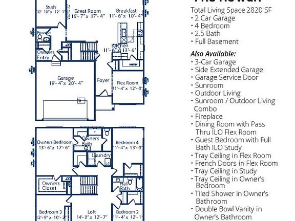 The Rowan! An open concept floor plan with 4 bedrooms, 2.5 baths, main floor study plus a flex room that can be used as an office or den. A beautiful oak railing staircase leads upstairs where you will find 4 spacious bedrooms, a loft area for additional living and convenient laundry. The kitchen showcases maple cabinets, quartz countertops, stainless steel appliances, island and a walk in pantry. The primary bedroom has a beautiful tile shower, double bowl vanity and walk in closet. Full basement with rough in plumbing. 2 car garage with a side extension. Front yard landscaping. Patio. This home will be complete in July and has not had quality inspections.