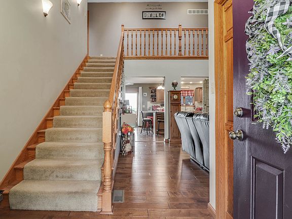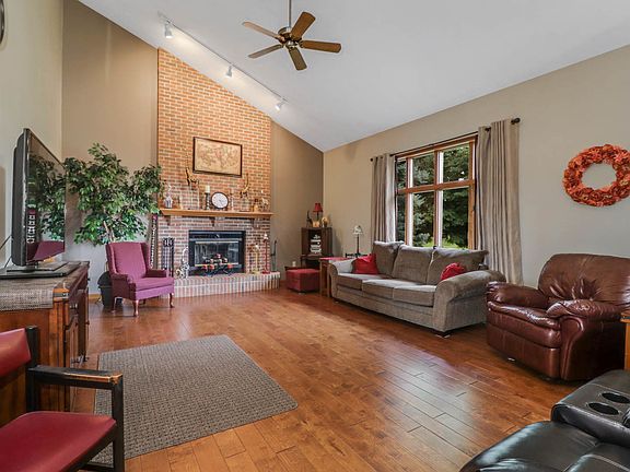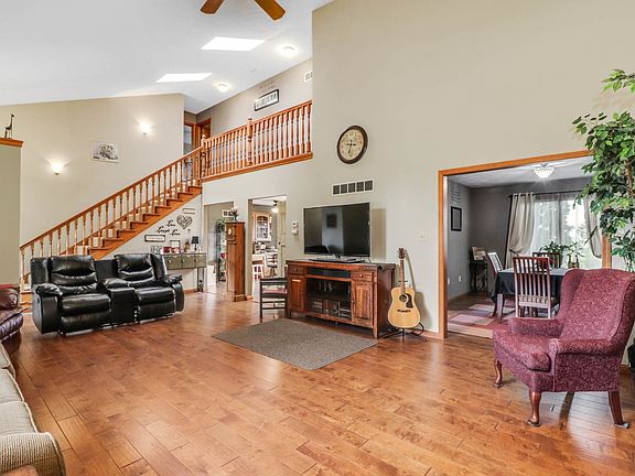 Stunning well maintained 3-4 bedroom home with 4+ car garage on lovely landscaped over half acre lot with no back yard neighbors and a Beautiful Country View from back deck! Huge great room with 17ft vaulted ceilings skylights and beautiful wood burning fireplace, large eat in kitchen with island, finished basement with family room. Stunning home with beautiful hardwood floors, solid oak cabinets, oak trim and solid oak doors throughout, Anderson Windows, Very solid built home w/ 2x6 construction, Reverse Osmosis System. Tons of updates and move in ready! Recent Updates include HVAC 2019, Radon Mitigaton 2018, Roof 2013, New SS Kitchen Appliances '18, Corian Countertops '17, engineered hardwood throughout, lots of fresh paint! This home is a short distance to the school. Won't last long!! **Must wear masks and sanitize hands