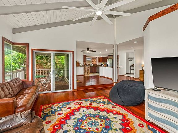 Breathtaking mountain views and partial ocean view from this 3bd/2ba home, with attached 2-car garage and covered lanai. Conveniently located in Hulu Manu Subdivision in Kapaa. Just 1.8 miles from Kealia Beach and the multi-use beach path. The mountain view includes Kalalea Mountain known for its King Kong Peak. The ocean view could be increased by cutting back the avocado tree which currently has an abundance of big delicious avocados.