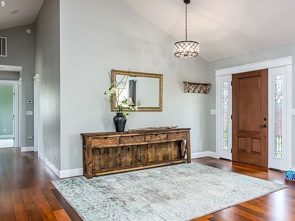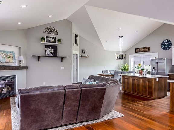 Beautifully remodeled home features open concept floorplan. Kitchen with quartz counters, pantry, huge island, 5-burner gas range, Bosch dishwasher, custom cabinets w/ pull outs & soft close, and farmhouse sink that overlooks pasture. Vaulted ceilings & Brazilian Walnut flooring throughout. Super-efficient with newer roof, HVAC, A/C, & tankless water heater. Enjoy the 1.53 hobby farm acreage with wonderful privacy, while being in town!