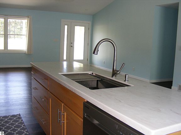Suburban setting on the east side of Cadillac. The Meadows subdivision is nestled amongst Timber Ridge, Floral Acres and Bramblewood Estates subdivisions. Built in 2017 and shows like new! Open concept main level. Stone fireplace in living room with attractive stone facing. Cathedral ceiling on most of main level. Island kitchen has Maple cabinetry with pull out shelving and Corian counter top. Design provides 48 inches between base cabinetry and island. Hall ways and doorways are a minimum of 36 inches wide. Main level includes continuous luxury vinyl plank flooring throughout. Dining area provides sliding glass door access to back yard composite deck. Master suite has bath access/pocket door, dual sink vanity, large glass shower with designer tile, rain fall shower head and 6 body jets. Seller used secondary bedrooms as home offices. Spacious coat room/storage are near family entry between home and garage. Basement has an egress window, insulation & drywalled the space is waiting for your finishing touch. 3 car attached garage is interior drywall finished. Whole house stand-by generator and household appliances are included in the listed price.