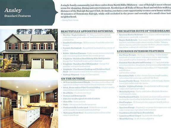 AMAZING MOVE IN READY 3 Bedroom Ranch w/loft NEW CONSTRUCTION home in Ansley!! The Farmville floorplan is perfect!! Ranch style with a loft & 4th bedroom/office & full bath. Gourmet kitchen w/ SS appliances, gas, granite & tons of cabinets. Amazing hardwoods on 1st level. Gorgeous master suite with walk in closet that leads to 1st floor laundry. Exquisite master bath. 1 year membership to the Raleigh Racquet Club. Green living at its best! LOCATION LOCATION LOCATION!! Min from North Hills & Downtown. Hurry these new construction homes are a MUST see!! There are 6 additional floorplans to build from. HURRY down and pick out your favorite cul de sac lot & build your dream home!! We are here Mon-Sat 11 to 6 & Sunday 1 to 6!!