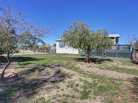 This is a really well kept 3 bedroom/2bath manufactured home (48'X27') with ALL NEW APPLIANCES!! A like new 10x10x10 Storage building-only 18 months old! New gas range, dishwasher, refrigerator, microwave and convection oven.There is a second manufactured home that does not go with the sale. That home is on a month to month space rental, paying $250.00 per month plus garbage and 1/2 water bill. Additionally, there are 3 covered horse Corrals.