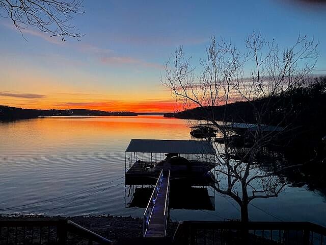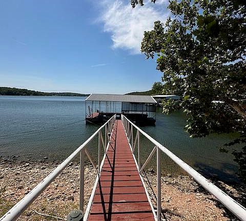 The lake views from this home are spectacular. Sunsets are just AWESOME!!! Spacious rooms for large entertaining or having the whole family in. 3 bedrooms, 3 baths, dining area and an awesome living room with fireplace. Plus a second living w/Bar. Upstairs bonus room features setting area with sleeping area and full bath. Covered decks span the length of the house on the lake side. With a bar area. Plus a lower level deck for more entertaining or just hanging out at the lake. Easy walk to the dock with a 30'x42' boat dock in great condition. Slip size is 15'x30'. Also has 220 outlet on the dock. And the hot tub stays. Sprinkler system from the lake, Rural water system. Seller is working on more parking area next to the 2 car garage. Plus community Boat Ramp.