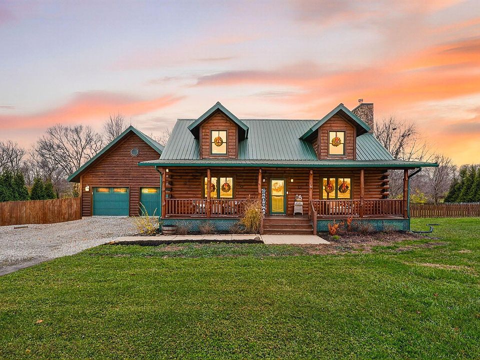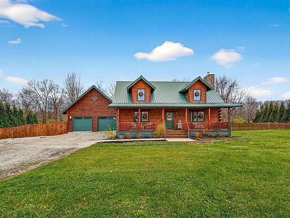 Welcome home to this stunning, Log Home situated on 2.29 acres of private land! This home is so unique! From the moment you view the lovely front porch, you'll be excited to open the front door! The large family room with vaulted ceilings, beautiful logs, and an amazing stone fireplace are immediately in view! The large dining room is overlooking the family room and can host a crowd! The open kitchen features lots of cabinetry, countertops, and upgraded appliances! FF laundry and two car garage! FF bedroom and bath! Two additional bedrooms and full bath with a darling nook area for den! Enjoy your days on the amazing back porch overlooking the fenced in backyard with in-ground pool! You won't believe the private land surrounded by trees in the backyard too! This home is amazing! Super clean, so unique, and truly a must see!