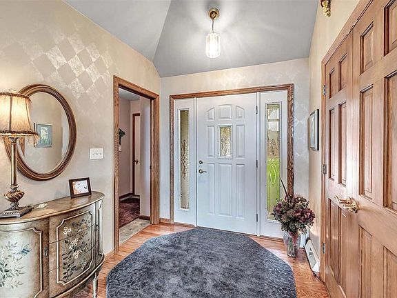 Well maintained 3 bed 3 bath home located on a beautiful setting approx. 10 acres w/ pond and mature woods. Enter the home and feel immediately at home with the open concept living room w/ wood burning fireplace and the large window overlooking the pond and woods. Entertain on the spacious two-tier deck off the dinette or in the finished walkout basement which offers the 3rd bedroom, large family room w/gas fireplace and bar area. Private 1st floor laundry off garage w/ lots of storage. Don't let the 2 garage doors fool you, this is a 3 stall garage. This is a hunter's paradise with a variety of wildlife. Close to the highway. Make an appointment to see this home today!!!!