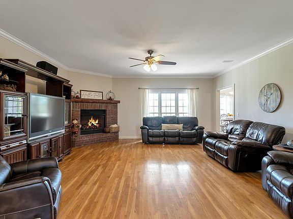 Come and see this amazing home! All brick with covered front & back porch. Also included is a concrete patio with gorgeous scenic views on the tree-lined property. Gas fireplace with hardwood and tile floors thru out, plus formal dining room! Surround sound in LR & bonus. Concrete drive, 2 car gar, brand new double convection oven, all kitchen appl stay. Large rooms, walk in storage in bonus area. No HOA. Showings to begin 12-18