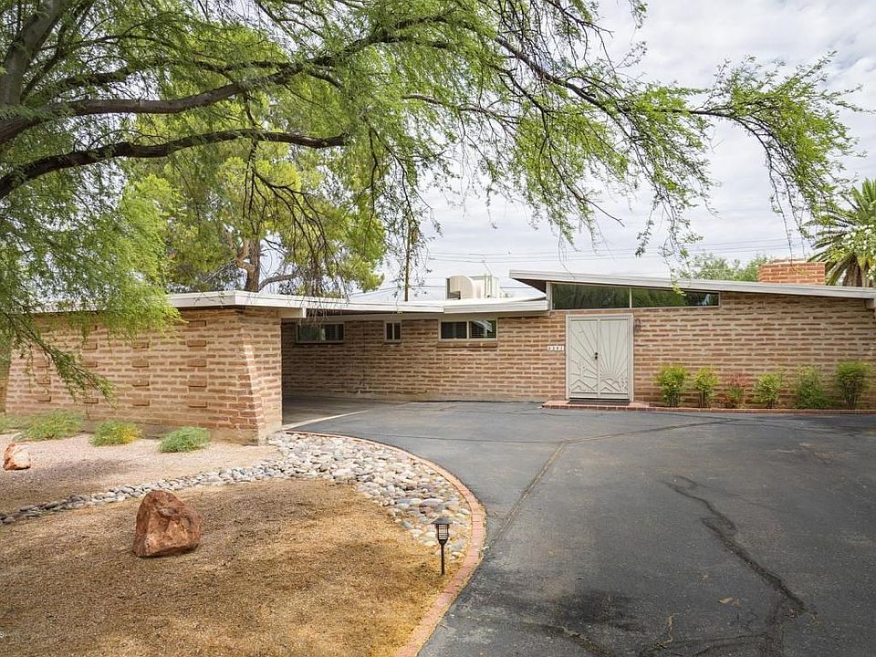 For more information on this property, contact the Listing Agent, Layne Lundeen at (520) 918-5889 or LLundeen@LongRealty.com. Beautiful ''Mid-Century'' 3 bedroom + den, 2 baths in central Tucson! Living room has vaulted ceilings, exposed adobe block, clear story windows & double sided fireplace to dining room. Kitchen has built in SS microwave, SS oven/stove, new faucet & resurfaced cabinets. Large master bedroom & remodeled bath w/porcelain tile surround in walk-in shower & new fixtures. Large guest bath w/newly glazed tub & quartz countertop. Landscaped backyard has irrigation system, covered patio w/extended slab, outside fan, malibu & flood lights. Large yard separated by wood fencing (2 yards). Newer dual pane low E windows throughout, plantation shutters, 2 security doors, termite warranty, roof recoated in April 2015, 2 storage sheds & addl storage in carport, frig in storage room and washer & dryer stay.