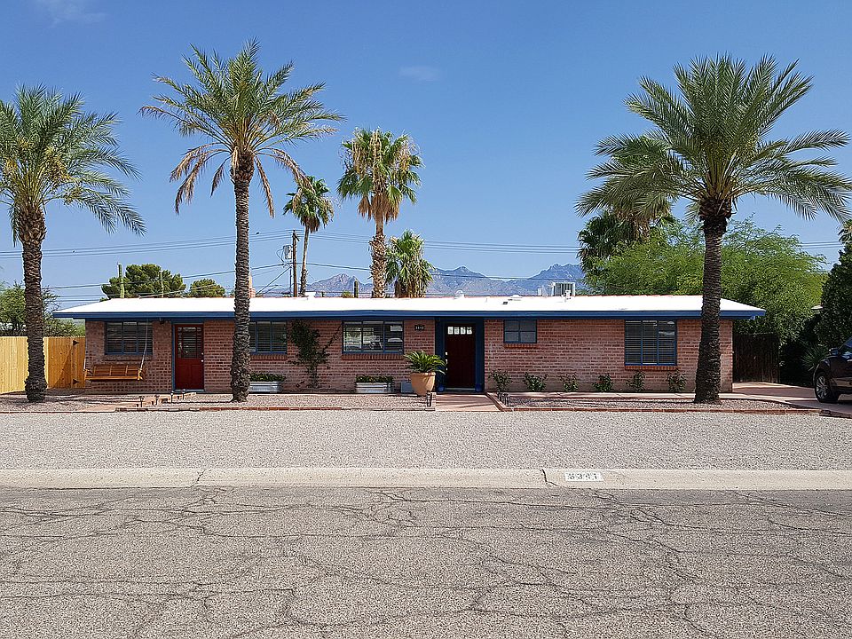 This lovely mid-century modern home with stunning mountain views and sought-after amenities sits in midtown. A stellar back yard boasts a custom pool with a cascading waterfall and heated Jacuzzi, a fire pit, lush grass, and paved basketball court. Inside, an exposed-beam roof and floor-to-ceiling windows give a light, open, airy quality that permeates the house. A large living room and enormous family room offer excellent common spaces. Saltillo tile and water-resistant bamboo flooring add style and beauty. Renovations such as new paint, new appliances, skylights, and updated fixtures and fans give the house a fresh look while staying true to its authentic retro style with original kitchen and bathroom tile work. This house is a true gem, combining the charm of a vintage 50's home with plenty of modern upgrades.