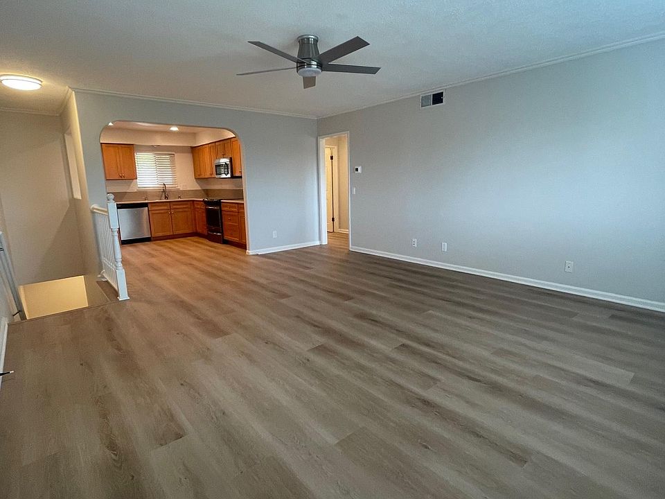 Great location in Huntington Beach - walking distance to restaurants, grocery store, Meadowlark Golf Course, bike/walking trails, parks and just 1.5 miles to the beach. The home is located within Fernhill, a quiet, private community which includes access to a pool and clubouse for residents. This bright and airy 3 bed/2 bath Huntington Beach townhome has been remodeled with new laminate floor, new paint for a fresh modern look with new fixtures and ceiling fans. The top floor boasts an open floor plan, along with 2 bedrooms (both with ceiling fans), a shared bath and kitchen featuring stainless steel appliances, as well as access to the private deck perfect for a BBQ. A third bedroom is on the lower floor with it's own remodeled bath, laminate floors, separate entrance and entry to the 2 Car garage (an additional street parking spot also available). Laundry hook-ups with folding area and shelves along with extra storage room in the garage. Virtual tour available Lease: 1 year Monthly Rent: $3800 Deposit: $4000 *No pets *No Smoking Tours available Sept 1. 12-24 month lease preferred. Owner pays association fees. All other fees paid by tenant. No pets. No smoking