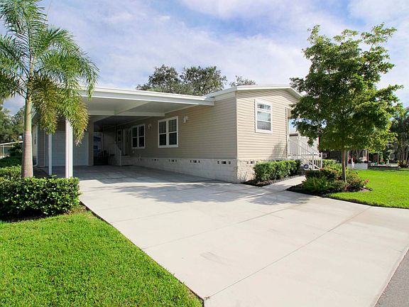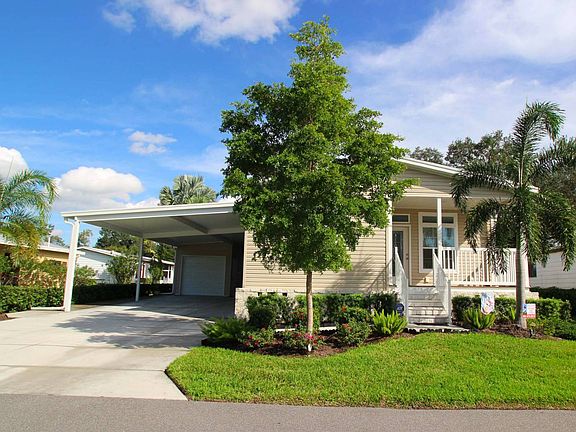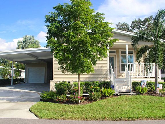 On trend beautiful and immaculately maintained 2- bedroom 2- bath manufactured home for sale near the best beaches in Florida. The owner really doesn't want to sell but has been offered the opportunity of a lifetime, to run one of the hottest hair salons in Manhattan! And we need to help make this dream come true! This home is one of the newer models offered for sale in the community. Everything is no more than 2 years old! A must see, and add to the top of your wish list! Shown exclusively and by appointment only with the listing sales agent. This home has a natural beauty and flow. The quaint Cape Cod looking porch welcomes you to the elegant inviting front door. This home has the "wow" factor going on with its extra high ceilings bordered by crown molding throughout which adds to the character and charm of this Florida dwelling. The large open concept layout offers an airy and roomy feel to all the main living areas. Perfect for entertaining or for your casual living lifestyle. Being offered unfurnished for you to add your own creative and stylish touch. The large tall windows radiate the gorgeous Florida sunshine which adds to the unique natural lighting of this home. All the accessories and final touches of this construction were done to perfection with great detail for immediate eye appeal. With rich dark wood cabinetry to the contrasting off white countertops, everything in this home is an attention getter. The kitchen not only has the handsome cabinetry countertop combo but also sports top of the line stainless steel appliances adding to the richness of the living and entertainment surroundings. Some additional features of this home are the inside washer dryer laundry room complete with a utility sink and more cabinets for storage. A one car garage at the end of a very large double wide driveway that can park many additional vehicles. An additional room for an office, den or sitting room. If you like living large this is the home for you! With a monthly lot rent of only $1,129.66, which includes your water, sewer, ad valorem and non-ad valorem taxes (real estate taxes that cover your police and fire departments, streets, street lights etc.) curbside trash collection, both recycle and disposal, lawn maintenance and irrigation and yard waste. And ALL the amenities of the community for your resort lifestyle of living. A newly renovated club house, 2 pools, 2 hot tubs, sauna shower, tennis courts, full gym with all new exercise equipment, ping pong, pickle ball, bocce ball, billiards, and the list goes on. Each month the community holds events such as potluck dinners, bingo, dances, exercise classes, card games, shuffleboard and bocce ball tournaments, socials, planned trips and activities, and much more. All fun and exciting ways to meet and make new friends! A vacation 365 days a year! And you could be living it! You'll never get tired of saying "It's just another day in paradise"! This home is located in one of the most vibrant and attractive 55+ communities in Florida. Situated on 120 lush landscaped acres this private enclave is meticulously maintained and surrounding an interior lake, which is the central focal point in the community. Whether you're an active or quietly retired there's something for everyone! Centrally located to popular attractions, John and Mable Ringling Museum of Art and their mansion home, The Mary Selby Botanical Gardens, Van Wezel Performing Arts Hall, Asolo Repertory Theater, Sarasota's very own Nathan Benderson Park, less than 10 miles away has become one of North America's premier rowing facilities. In April 2016 the park hosted the U.S. Olympic Team Rowing Trials, bringing Olympic hopefuls from all over the country to Sarasota. Siesta Key Beach which is only 7 miles away was voted the #1 beach by Trip Advisor in 2017. Just one of the many beaches that are just miles away along with Downtown Sarasota with its fine dining, cultural centers.