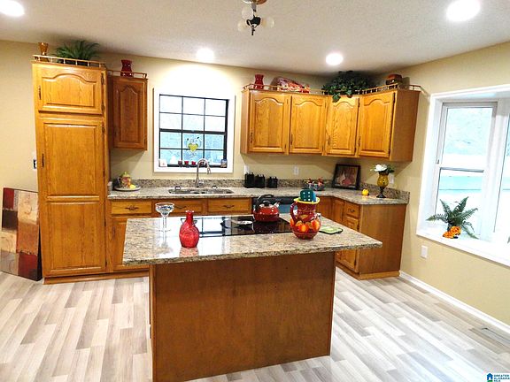 Large brick beauty sitting on over 2 acres(3&1/2 lots) This home has been updated with beautiful laminated hardwoods, open floor plan and split bedrooms with huge kitchen with granite countertops with island and new fixtures, stainless steel appliances, recessed lighting. You walk down a hall to a masterbedroom with fireplace and large bath across the hall. On the other side of the house is three more bedrooms and a hall bath. A main level laundry is off the kitchen with a huge deck that wraps around half the house overlooking your acreage that is perfect for gardening. Downstairs is three garages, den, bedroom, and a bath. This house also boast of a workshop downstairs with storage.There is a detached garage with storage for your RV. That makes five garages in all! New roof and HVAC. Nothing left to do but move in! Hurry, this one won't last!