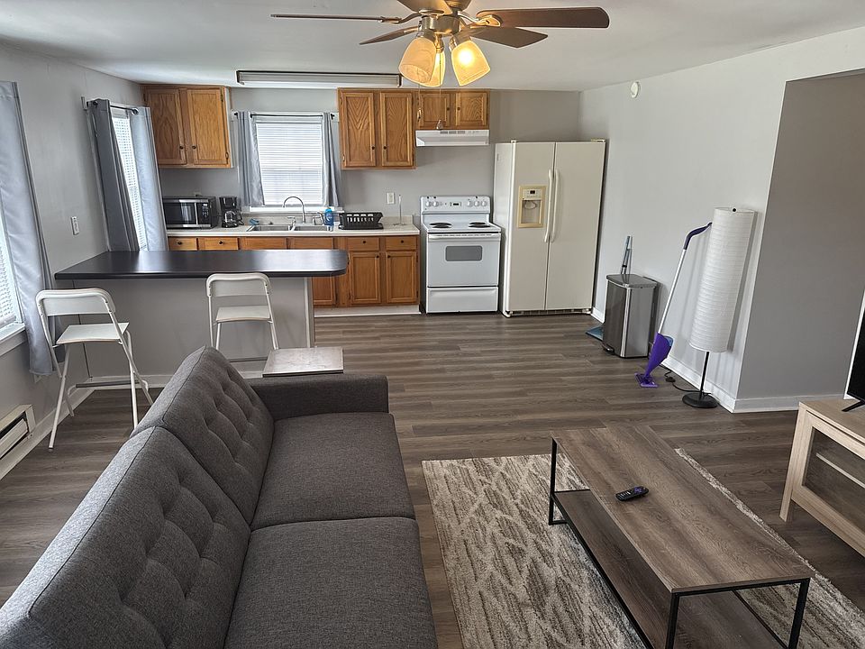 Looking for a move-in ready rental? This charming 2-bedroom, 1-bath upstairs unit is fully furnished and was formerly an Airbnb perfect for those seeking comfort and convenience! Features Include: Spacious living area with LVP flooring; Tile bathroom with walk-in shower; Ceiling fans throughout; AC wall units for cooling comfort; Window treatments included Fenced yard for added privacy; No pets allowed