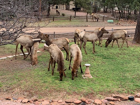 Mountain living at its best. Close to USFS, single level 2344 sq. ft. home in the tall pines of Strawberry. It offers an updated kitchen, that has an island w/ bar stool seating. There is abundant storage in its large walk in pantry. The open floor plan, gives sitelines from kitchen, dining to living rm which has a pellet stove for those cool evenings. It has 3 bedrooms & 1 1/2 baths, plus a Master bedroom with an ensuite that will rival any resort, & a huge walk in closet. In addition, there is a personal deck., The house also has skylights throughout that offers natural light. The large covered deck in front is perfect for sitting out & watching the elk. The large circular paved driveway has a 2 car & single carport Fully chain link fenced back yard & 2 additional sheds for storage.
