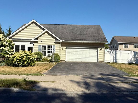 Modern three bedroom, two bath ranch in the City of Plattsburgh. 1,363 sq ft of thoughtfully designed living space. The interior features luxury vinyl tile and ceramic tile flooring, combining durability with style. Nice sized kitchen with granite countertops and breakfast bar. Spacious primary bedroom and private bath. The two car attached garage provides extra storage and a completely fenced backyard make great space outside the home. 21'x13' room above the garage provides extra storage or could be made into living space. Close proximity to downtown, the historic Oval and a variety of local restaurants. Contingent on sellers closing on the home of their choice which they currently have under contract. Utilites: $120/month summer, $140/month fall & spring, $200/month winter months. Includes water/sewer/electric & trash. Audio/Video in place recording outside the home. Disclosures on the porch - please sign before showing.