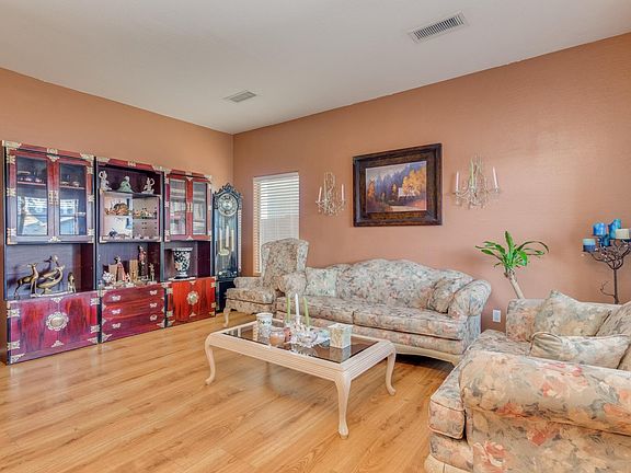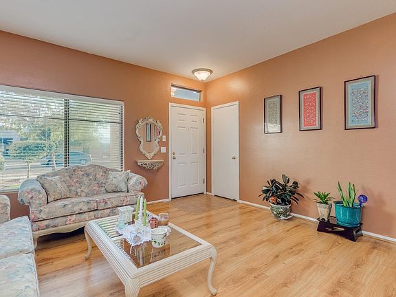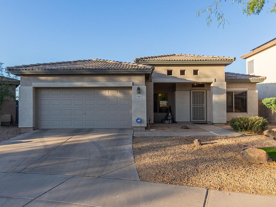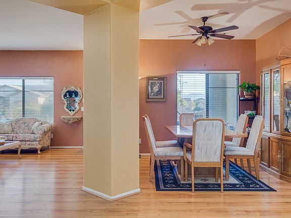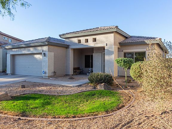 3 Bed/ 2 Bath Home with a Den that can be easily converted into a 4th Bedroom or use as an office or formal dining room. No Neighbors behind! A Pristine & lovely Home with custom palette, beautiful laminate wood floors, window blinds, ceiling fans, & plenty of natural light throughout. Wood cabinetry in kitchen, stylish counters, breakfast bar, SS appliances, & patio access from breakfast area. Entertain with ease! Media alcove in family room. Plush carpet in all bedrooms, with ample closets. Patio access from master retreat & private en suite. Covered patio w/extended paver patio, grassy play area, & endless blue skies. Community Playground. Minutes away from new Loop 202 Freeway Access. Welcome Home.