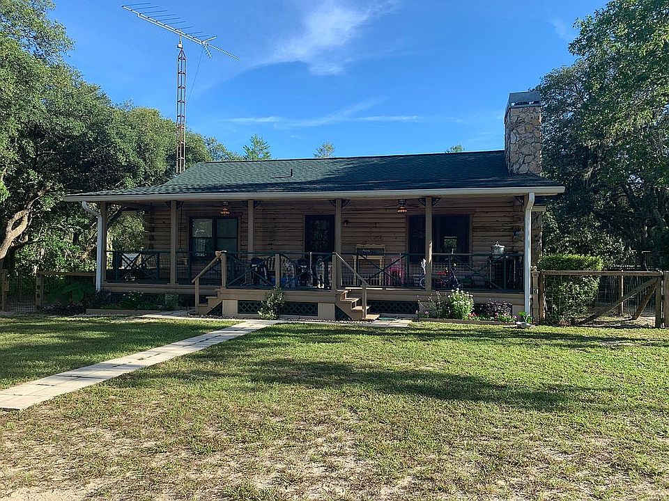 Beautiful 2/1 log home with 1/1 efficiency/mother in law suite. Beautifully landscaped 2.5 acres suited in corner lot in quiet neighborhood. Stone fireplace, new roof. Check it out today! Call or Text 352-246-3422 for questions or viewing!