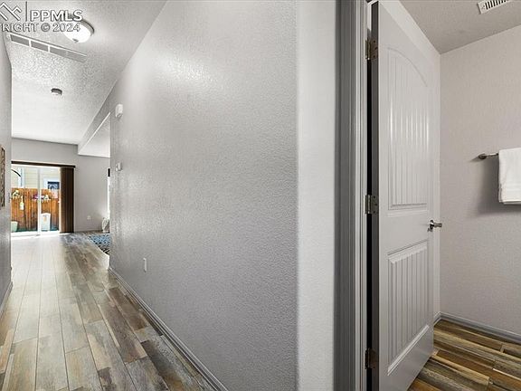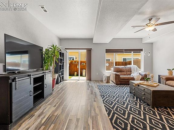 This charming property located just off the Powers corridor, a short driving distance to military bases, shopping, restaurants and more! New paint, new doors, and new carpet throughout! Meticulously maintained, this home features 9-foot ceilings on the main level, new wood flooring a large living room with access to the patio. The kitchen features a peninsula for additional seating, ample cabinet space and a large entry. The upper level includes a large landing perfect for a small desk or office area, the master bedroom with attached bath and walk-in closet. Also on the upper level is the laundry, second bedroom and full bathroom. Fenced in yard, great for pets with new sod, extended concrete and privacy fence.
