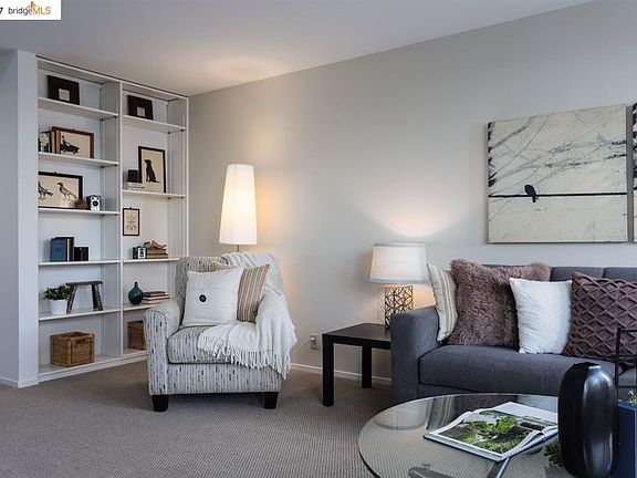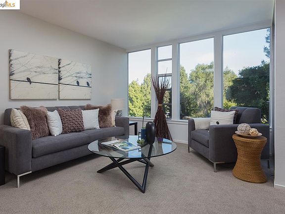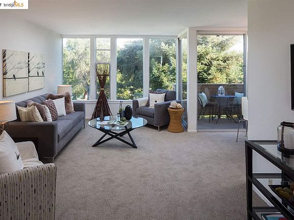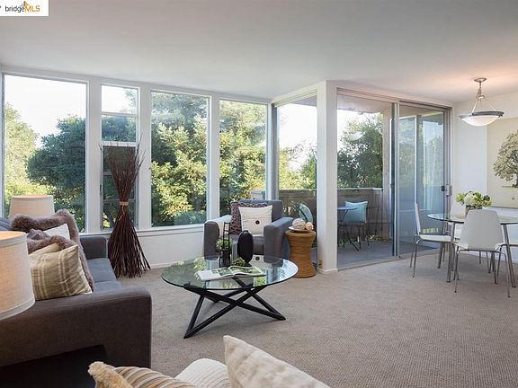 Rockridge Stylish Smart Elegant Condo Residence. Beautifully renovated 2 bedroom, 2 bath residence with a bonus den, spectacular morning sunrise views overlooking Claremont Golf putting green and trees. Sunny and bright throughout the day, a wonderful hidden retreat. Features: recessed lighting, drop lighting, Oregon white oak wood composite flooring, quartz kitchen counters, handmade subway tiles from Sonoma Tilemakers Artisans, SS kitchen appliances, glass panel doors, wine cooler, ceiling fan, sconces, custom Panoramic patio doors, master bedroom patio deck access.