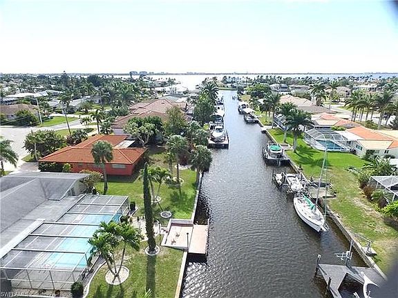 Location, Location! This charming waterfront direct sailboat access home sits on a peaceful canal and features one of the best and most sought after locations in Cape Coral. The property is located in the heart of the highly desirable Yacht Club area. The location is just a two minute boat ride to access the lower portion of the Caloosahatchee river and within easy walking distance to the Yacht Club Beach. The home features 1750 sq. feet of open concept living space with a modern kitchen, bathrooms, granite counters and wood look porcelain tiles throughout. The home has three bedrooms, two full baths, heated pool with lanai, dining area with pool view, central air conditioning and comes with all the furnishings. There are TV's in each bedroom (50" in master bedroom), big screen TV in living room, washer/dryer, high speed wireless cable internet. For the fisherman the property also features a large new composite dock with 10,000 lb boat lift, a stainless steel fish cleaning station and a 2nd freezer located in the garage for bait storage. As an added bonus the property comes with a large Mango & Avocado tree that produces bushels of fresh fruit.