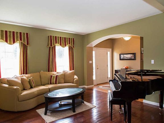 Massive 4 bed-3.5 bath-3 car extended garage 2 story will give plenty of space to spread out. Enter the home into a spacious foyer, arched details lead you into the sitting room & formal dining room. Great kitchen with large island that opens to breakfast room with bay windows. Kitchen opens to the Hearth room which also has vaulted ceilings & bay windows. Hardwood throughout main level. As you make your way upstairs, you will notice a large loft which provides great additional entertaining space! Deck looks out to back yard from family room. Master bedroom boasts vaulted ceilings & master bath with jetted tub/separate shower, walk-in closet & additional traditional closet. Other bedrooms are spacious with a Jack & Jill bath. 4th bedroom has walk-in closet. Conveniences include zoned HVAC each with dehumidifiers, tankless water heater, and custom blinds on windows. Basement walks out to lower patio where you can enjoy the large yard that backs to trees and view of the lake!