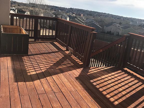 *26 minutes from Schriever AFB *11 minutes from Peterson AFB *3 minutes from Odyssey Elementary School *5 miniutes from the SkySox Stadium *Has a Large Balcony/Deck *Fully finished walkout basement with bedroom and bathroom *Large backyard *No H.O.A. Tenants are responsible for all services which include utilities, water, cable, trash etc