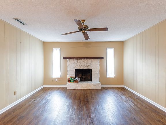 3 bedroom/2 bath home with a metal roof in Golf course community. Priced well below current market value to sell quickly, bring your imagination, being sold as-is! Open and split floor plan with Master bedroom suite on one side, bedrooms 2 & 3 on the other. Lovely stone front fireplace and wood floors just waiting for you to restore it.