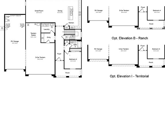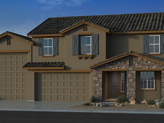 The 55-RV5 floor plan is a two-story floor plan that comes standard with 2,981 sq. ft., 4 bedrooms, 3 bathrooms, a 3-car tandem garage, an RV garage, and a loft. This is the largest of the Fiesta floor plans that is offered at Allen Ranches, and it will not disappoint. The kitchen, dining, and gathering room is all open, so invite your friends and family over for entertaining. You will have the perfect space for hosting. There's one bedroom downstairs, and the rest are upstairs along with a loft. Use the loft area however you please! It would make for a great playroom, study, secondary living area, and so much more. The owner's suite boasts a spacious walk-in closet and split vanity sinks.