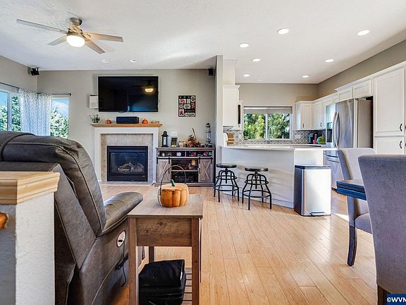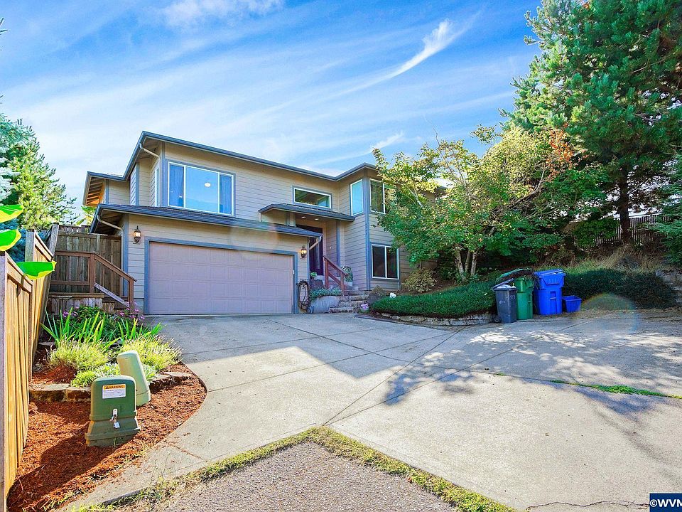 ***SEE 3D TOUR*** MOUNTAIN VIEW home! Open floor plan in South Salem in close proximity to Wes Bennet Park, Pringle Elementary, bus lines, shopping and I-5! This home is light and bright and features vaulted ceilings, new quartz counter tops and tile back splash. Separate rec room downstairs currently being used as a 4th bedroom. Fully fence backyard with raised garden beds and hot tub (TO STAY WITH THE HOME). Sale contingent on successful close of escrow of sellers replacement home, already under contract
